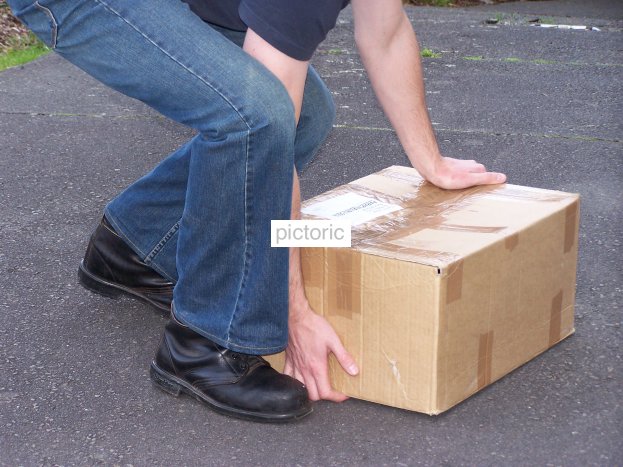 The correct placement of feet and body posture when lifting heavy objects single handed.
